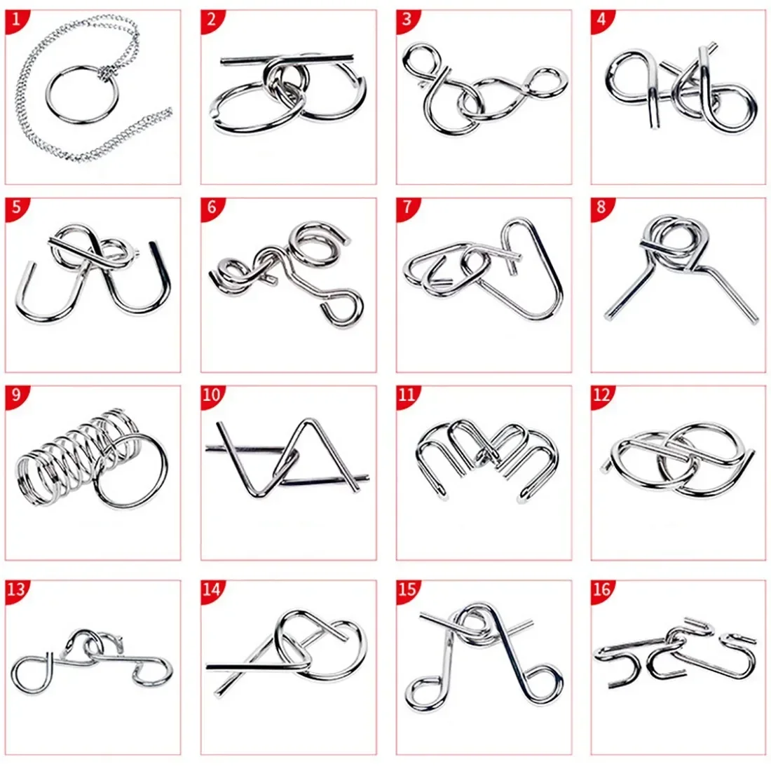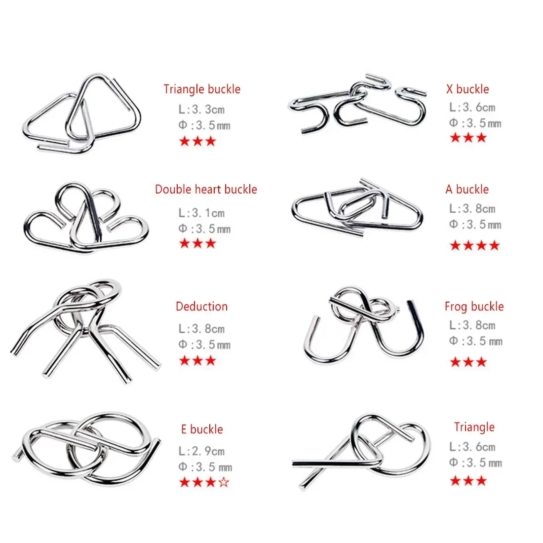 8Pcs/Set Metal Montessori Puzzle Wire IQ Mind Brain Teaser Puzzles Adults Interactive Game Reliever Educational Toys